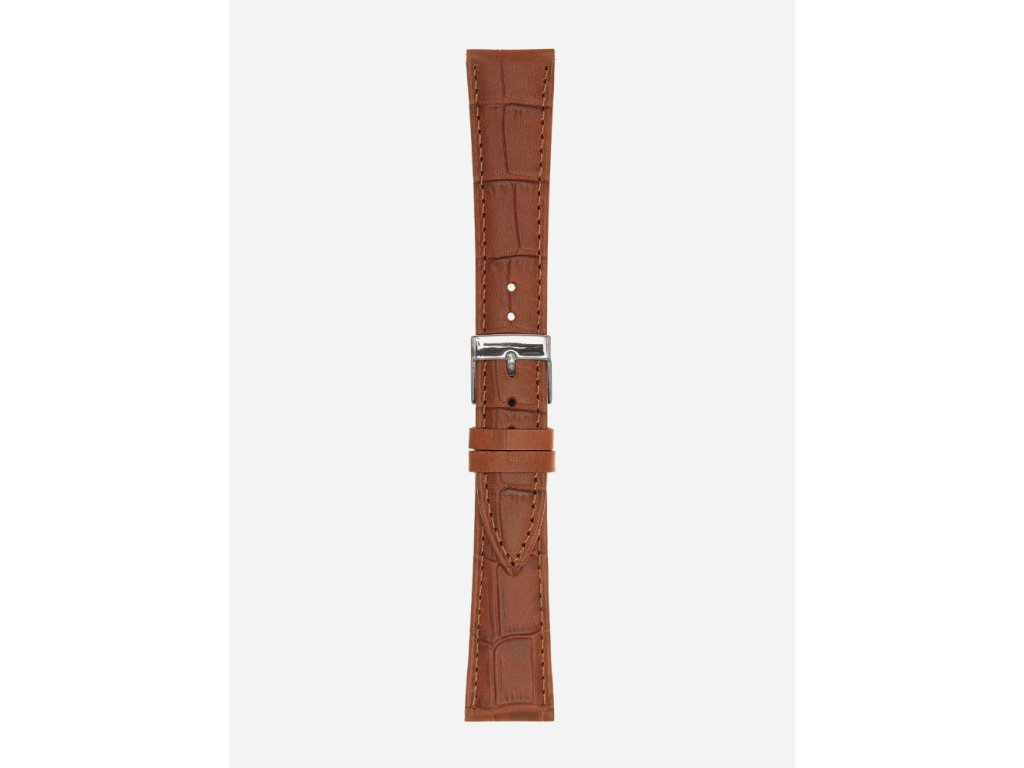 Kožený, matný remienok koňakovej farby, so vzorom aligátora