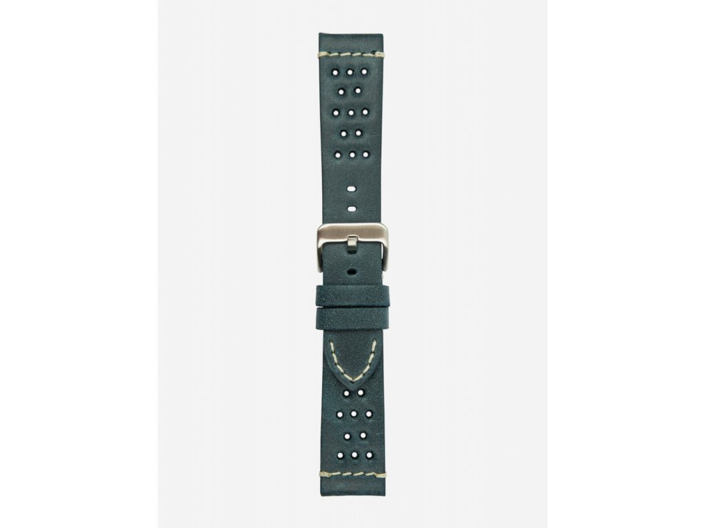 Tento hladký dierkovaný remienok v retro štýle je ušitý z talianskej teľacej kože. Prešitie kontrastnou bledou niťou mu dáva štýlový nádych. Spodok remienka je taktiež kožený, preto je pre pokožku na nosenie príjemný. Pracka z nerezovej ocele je krásne lesklá a okrem dobrého výzoru má prednosti v tom, že je nehrdzavejúca a antialergická.